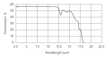 使用VGF生長方法生產的的高純度GaAs單晶,經過切磨拋后,紅外2~12μm波段的透過率可以達到≥55%的水平。產品厚度較厚時(≥3mm),透過率會隨著厚度的增加逐漸降低,一般會在51%~55%左右。在實際運用中當紅外材料的強度和硬度是產品的關鍵因素時,GaAs也可用于CO2激光應用,作為ZnSe光學透鏡或鏡面的替代品。