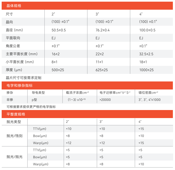 以InAs單晶為襯底可生長InAsSb/InAsPSb,InNAsSb等異質結材料和InAs/GaSb超晶格結構材料,可制作波長2~14μm的紅外發光器件和中紅外量子級聯激光器,這些紅外器件在氣體檢測、低損耗光纖通信等領域具有良好的應用前景。此外,InAs單晶具有很高的電子遷移率,是一種制作Hall器件的理想材料。