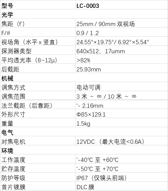 以下僅為示例,更多鏡頭參數請提交咨詢獲取。